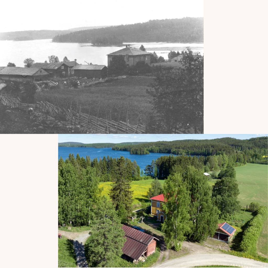 Maiseman muutos Ennen ja nyt -kuvaparina. Riekko, Saarijärvi